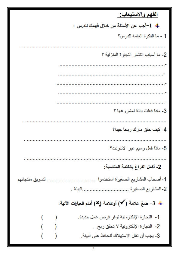 أوراق عمل التجارة الإلكترونية في اللغة العربية لغير الناطقين بها للصف السادس الفصل الاول