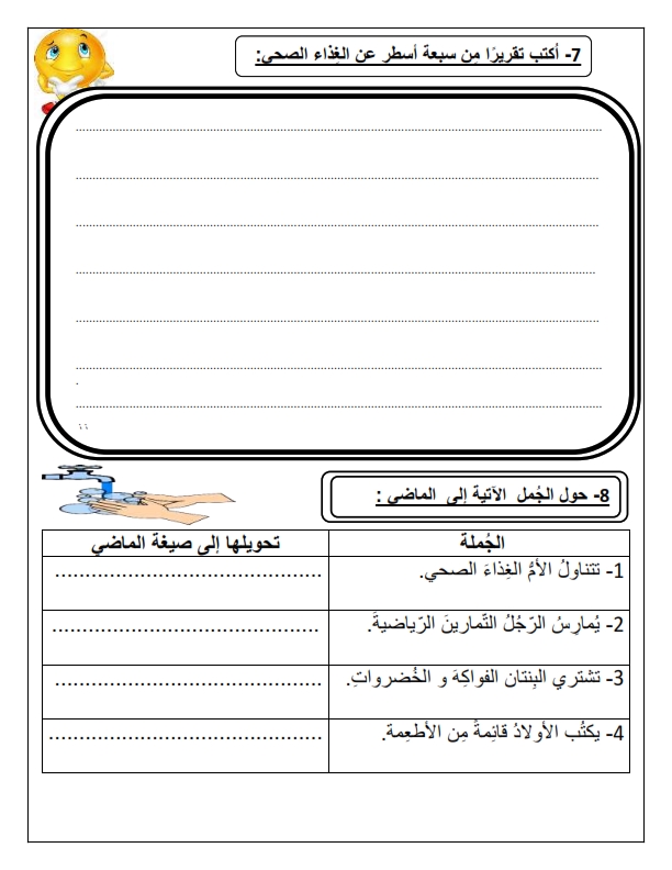 أوراق عمل الغذاء والصحة في اللغة العربية لغير الناطقين بها للصف السادس الفصل الثالث