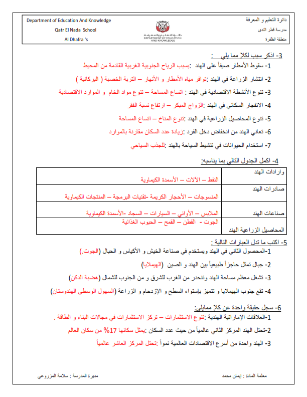 أوراق عمل للصف السادس مع الإجابات في الدراسات الاجتماعية الفصل الثاني 2018 2019